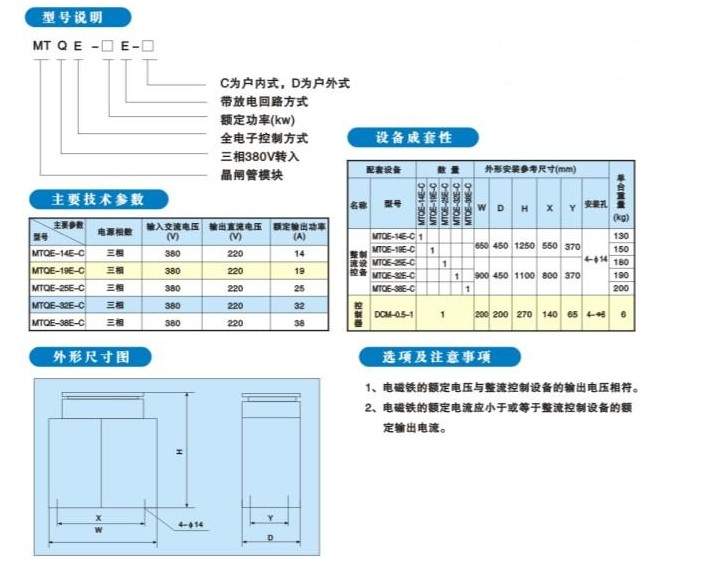 該系列產品是我公司開發研制的具有國際先進水平的新產品,填補了國內的一項空白。該產品采用晶閘管三相橋式整流方式,通過對觸發脈沖的控制,從而獲得所需要的直流輸出電壓,通過控制回路的邏輯電路,由晶閘管控制正向勵磁和反向消磁,省去了直流接觸器,避免了因接觸器的觸點拉弧引起的故障,延長了產品的使用壽命。